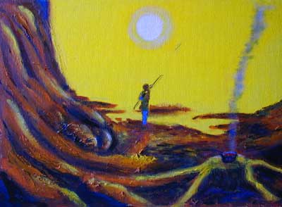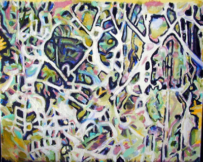 En skov blev i Photoshop til krimskrams der nu er et maleri.