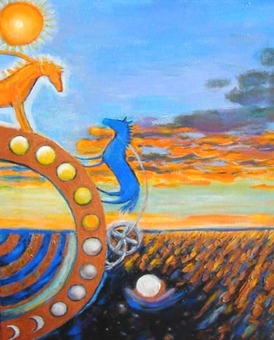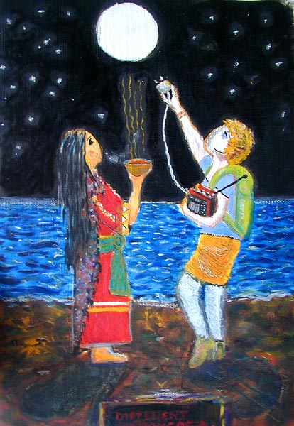 mellem den vestlige og indianske tanke. Billedet symboliserer